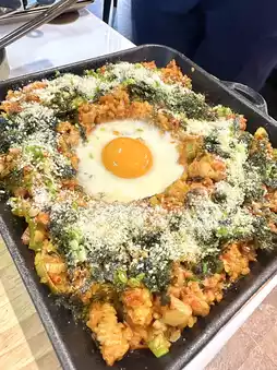 This is a popular menu in Korea right now. Served with side dishes and soup.
