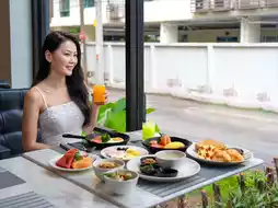 🍽️ 4K Cafe, the hotel's restaurant, offers All Day Dining with a variety of dishes. The taste is spicy and delicious. Along with a variety of drinks For breakfast Also ate in this room. It was a buffet line with a variety of menus. And there was also a special menu served hot for you to eat to your heart's content. 🍳🥓