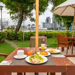 Riverside restaurant with a beautiful view, eat delicious dinner, see the beautiful river view