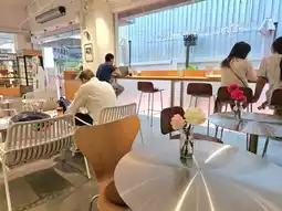 Environment and Service: The space is large with various indoor and outdoor seating options. The decor is bright and clean with white as the main color. Each table is adorned with a small bottle of fresh flowers. The staff is friendly and can communicate in English.