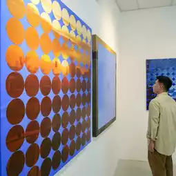 The artist reinterprets his old works, replacing the peaceful nature views with symbols that reflect political and social changes. The dots, stripes, and abstract elements added to the images are not just artistic tools, but symbolic language that speaks of the power structure, silence, and hidden truths, like an artistic code that reflects political issues. This exhibition is therefore like a representation of contemporary Thai society, where people are gradually awakening and moving beyond political naivete to a deeper understanding of the problems of power structures and oppression.