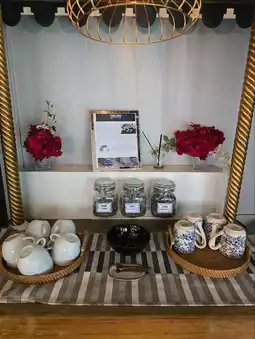 ðReasons for: Hot food service, a variety of food menus, in the morning, breakfast is served, Thai style, Western style, various salads, various soups, breads and croissants, chicken rice, chicken ham, scrambled eggs, macaroni with sauce, spaghetti with various sauces, a variety of drinks, with a bartender making them. There are also draft beers, champagne, sparkling white wine, red wine. There are also health drinks, various tea selections that are sold with good quality. Take soft drinks, fresh fruits, Thai desserts and various bakery products.