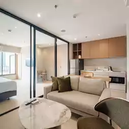 Latest opening ๐ฆ๐ผ๐บ๐ฒ๐ฟ๐๐ฒ๐ ๐ฆ๐๐ธ๐ต๐๐บ๐๐ถ๐ ๐ณ๐ญ ๐๐ฎ๐ป๐ด๐ธ๐ผ๐ธ, accommodation in Sukhumvit area with an excellent location Comes with a room in the style of ๐ฆ๐ฒ๐ฟ๐๐ถ๐ฐ๐ฒ ๐๐ฝ๐ฎ๐ฟ๐๐บ๐ฒ๐ป๐. The room is decorated in a minimalist style. It is well-proportioned with a spacious area. It is divided into a bedroom, a living room area with a kitchen counter, a dining table. In the ๐๐ฎ๐ฐ๐ถ๐น๐ถ๐๐ถ๐ฒ๐ section, there is everything, including a swimming pool, fitness center, laundry room, restaurant and ๐ฅ๐ผ๐ผ๐ณ๐๐ผ๐ฝ ๐๐ฎ๐ฟ