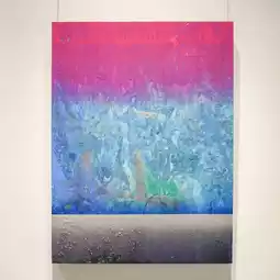 The works in this exhibition are abstract landscape paintings that do not emphasize realism, but rather reflect the "present moment" the artist perceives. The layers of color and texture in his work resemble the overlapping moments in human consciousness. Each painting appears to have a repetitive pattern, but upon closer inspection, subtle variations are revealed, akin to the activities of billions of humans circling under the same sky.