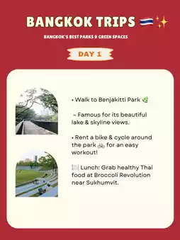• Start at Lumphini Park 🌳 – A relaxing spot for jogging, picnics, and watching giant monitor lizards! 🦎