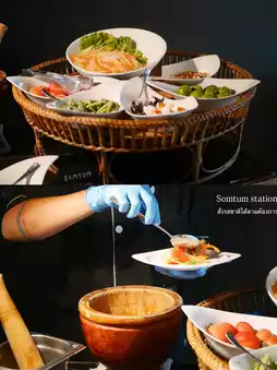 There are many dishes to choose from. Both snacks, hot dishes that the chef makes dish by dish, Somtam, Tom Yum Noodles, Khao Soi, Northern Larb, salad bar, fruits, desserts, ice cream and many other menus that rotate without repeating each time. 🍰🍓