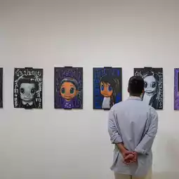 In a complex world, full of conflicts between brightness and cruelty, the artist presents works that reflect the voices of children through cute and adorable paintings of children, conveying sincere, honest and unadorned feelings through more than a thousand words on hundreds of sheets of paper, reflecting the child within all of us, no matter how grown up we are on the outside.