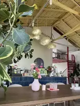 A cute cafe around Ngamwongwan. For those without a private car, you can take a taxi from Chatuchak. We went around 11:00 AM. The advantage is that there aren't many people, but the downside is that the sun is very strong. However, they have both indoor and outdoor zones. After taking pictures, you can escape the heat inside. The flowers are very beautiful, and there are many photo spots. The food is delicious. My favorite is the spicy cucumber salad. Overall, this place is great. Highly recommended.