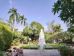 In the early morning light, Bangkok's streets still carry a hint of coolness as I arrive at Saranrom Park, located in the heart of the city. Known for its vast green spaces and serene lakes, this park is an ideal spot for a leisurely walk or to unwind. As I stroll along the lakeside path, the clear waters reflect the towering tropical trees and the sky's clouds, creating a natural painting. Along the way, I encounter locals jogging and tourists meditating, each moving at a relaxed pace. Occasionally, I pause to sit quietly on a bench by the lake, listening to the birds and the wind, and feeling deeply at peace in this tranquility.