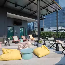 พื้นที่ส่วนกลางมีสระว่ายน้ำบนชั้นดาดฟ้า มาพร้อมกับวิวเมืองสวยๆ มีพื้นที่นั่งเล่นและห้องประชุมขนาดเล็ก ส่วนด้านล่างมีห้องอาหารจีน "Charlie's by Tongpeng" มีเมนูอาหารจีนต้นตำรับให้เลือกหลากหลาย และรสชาติแต่ละจานก็คืออร่อยมาก บริเวณล็อบบี้ของที่นี่ยังมีคาเฟ่เล็กๆ "Black Magic" ที่บอกได้เลยว่าคอกาแฟห้ามพลาด เพราะที่นี่เสิร์ฟกาแฟโดยใช้เกรด specialty coffee และยังเป็นคาเฟ่ที่มาได้บ่อยๆ เพราะแต่ละช่วงจะมีการหมุนเวียนเปลี่ยนเมล็ดกาแฟจากที่ต่างๆ มาให้ได้ลองกลิ่นและรสชาติกันด้วยครับ