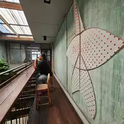 Pracha Cafe is a hidden gem with a vintage atmosphere reminiscent of an old printing house. The cafe is decorated in a vintage style and has two floors with multiple seating zones. For those who love taking photos, this place is a must-visit with plenty of artsy vintage corners to capture. It is another interesting spot in the Talat Phlu area. The drinks here are intriguing, and the snacks are sourced from local shops in Talat Phlu, maintaining a strong local flavor. The cafe also regularly hosts exhibitions, cycling activities, and various workshops. The owner is lovely and kind.