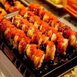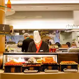 👉 Japanese food station From Hagi restaurant, which brings premium ingredients directly from Osaka, including salmon, tuna, sushi, sashimi, maki, seaweed rice wrapped in shrimp tempura, shrimp eggs, sweet eggs by Chef Tae