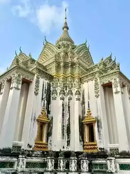 When visiting Wat Pho, don't miss the incredible details of the Buddha's feet 🦶 and pillow—truly stunning in person! The temple itself glimmers with gold and features unique, pointed architectural designs. While there is a dress code, no worries—free skirts are provided at the entrance. The grounds are filled with fascinating sculptures, and if you're lucky, you might witness a monk ordination ceremony. Absolutely worth the trip!