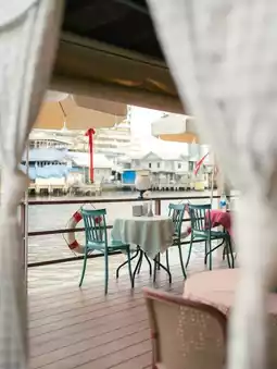 Today, Jack will tell you about a secret riverside cafe with a great atmosphere. There are drinks, noodles, and food. You can sit for a long time. Especially in the evening, the light is great. There are many photo spots. It's good to go with your partner or your gang. The price of food and drinks is good, not too high. This shop is also an old soy sauce maker in the area. We can buy it as souvenirs. Jack and his partner got a lot of beautiful photos. Anyone who travels to Bangkok must stop by and see.