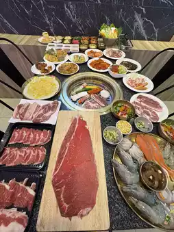 🦞 New menu packed with seafood: river prawns, salmon, cheese scallops, chuck eye roll, Australian Wagyu beef, Wagyu beef sushi, large ribeye pieces (PLATINUM package)