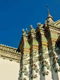 Each corner of Wat Pho reflects a breathtaking fusion of Chinese, Indian, and Thai Buddhist cultures, showcasing artistry and harmony that transcends time. The vibrant details invite endless exploration, making the temple’s exterior an unforgettable masterpiece in Bangkok’s cultural tapestry. 🕌