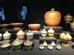 ✨️The Phra Wiman group consists of 12 thrones, exhibiting different arts as follows: Royal palanquin, royal carriage, royal throne, royal throne, royal entertainment and games, royal residence, royal porcelain, metal utensils, sab utensils, carved wood, royal clothing and fabrics, pearl utensils, Buddhist utensils, and weapons.