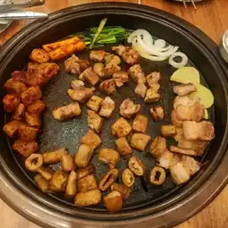 Korean restaurant that I tried, following the reviews, and found that it was delicious, worth it, and very affordable. I recommend bringing friends, or else you won't be able to finish it. There are both single dishes and sets. I tried the grilled intestine set, which was a pork set, not very big, and there was a larger meat set. You can also order more single dishes to eat as you please, whether it's kimchi soup or steamed eggs with cheese. The highlight of this restaurant is that you can refill side dishes as much as you want. And every side dish is delicious. The fresh stir-fried vegetables are very crispy. The mashed potatoes are also delicious. I highly recommend Gopchang House Korean BBQ, located next to another famous restaurant called the club. It's an ice cream shop that sells very well and has a very long queue. If anyone wants to try it, I recommend calling to make a reservation first. Otherwise, you'll definitely have to wait a long time.