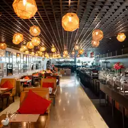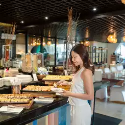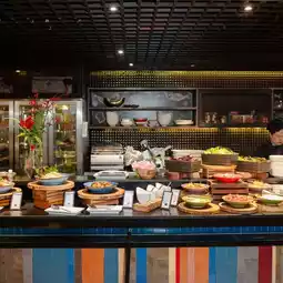 𝗜𝗻𝘁𝗲𝗿𝗻𝗮𝘁𝗶𝗼𝗻𝗮𝗹 𝗪𝗲𝗲𝗸𝗱𝗮𝘆 𝗕𝘂𝗳𝗳𝗲𝘁 Packed with lunch, international buffet with authentic Thai dishes, freshly cooked food with live cooking stations, delicious food, a very worthwhile lunch. Most importantly, you can bring your dog or cat with you. There is a zone for kids too.