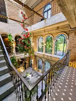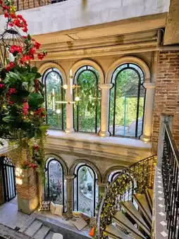 From the outside, it looks like a pure white manor, with a retro wooden door entrance and a high-ceilinged corridor hall, which is the style aesthetics of the Renaissance. Whether it is the round arch floor-to-ceiling windows, the retro iron spiral staircase, the European ancient Roman style architecture and decoration, or the lighted patio that runs from the third floor to the first floor, it is really amazing!
