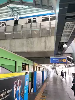 After visiting the Maeklong Market, I transferred to the BTS at Wutthakat. From the tranquil ground-level platform to the modern elevated station.