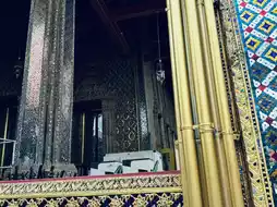 At the center of the temple is the Emerald Buddha (Phra Kaew Morakot), one of the most sacred Buddha statues in Thailand. Standing at about 66 cm tall, its presence is immense. The main hall where the statue is enshrined is a beautiful harmony of gold and green, exuding a solemn atmosphere. The Emerald Buddha's attire is changed seasonally, with the ceremony conducted by the royal family, reflecting the deep connection between Thai Buddhism and the monarchy.