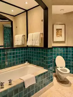 The swimming pool and emerald-colored bathroom that give off a resort vibe in the heart of Bangkok are very attractive :)