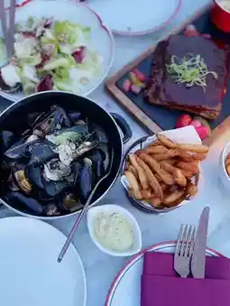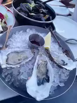 Belga rooftop bar & Brasserie is a Belgian-style restaurant located on the 32nd floor of the Sofitel Bangkok Sukhumvit hotel. Personally, I don't have much knowledge about Belgian cuisine, but I know that their famous dish is the wine-steamed mussels, so I had to order it. Other dishes I ordered included fresh oysters, baked pork ribs, salad, and French fries. Overall, the food tasted great, and the atmosphere was fantastic. The evening sky view, transitioning to the city lights at night, was very romantic, perfect for a dinner date. The staff provided excellent service, being very attentive. The meal cost around 2xxx. If you're looking for a rooftop bar restaurant, this is a great option. 🫶🏻
