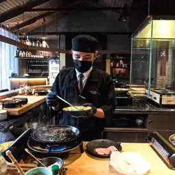 HITORI Sukiyaki stands out for serving traditional Kansai-style Sukiyaki. The chef will cook the food in front of us. It is meticulous. It gives a great feeling. 🫶🏻