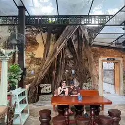 This cafe is hidden in an old house by the Chao Phraya River, located in a 200-year-old Chinese house. As soon as you walk in, you can feel the strong retro atmosphere. The wooden windows, old furniture, and the charming spiral staircase, every detail tells a story of the past, and it is very charming.