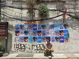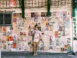 4. A photo spot before the entrance to MAHAPHO RIVERVIEW (Bodhi tree by the river). This is different from other spots because it has old-style stickers and papers advertising various things from the past attached to the walls. This is another corner where you can take beautiful photos. There will also be painted letters next to it.