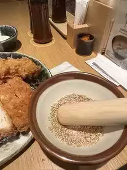 Katsukura, the renowned tonkatsu restaurant from Kyoto, is now at ICONSIAM 🐷. The delightful experience begins with freshly ground sesame seeds that you have to grind yourself before pouring the special tonkatsu sauce 🥣. The thick, juicy, and crispy-on-the-outside, tender-on-the-inside fried pork is served with Japanese rice, miso soup, and unlimited refills of shredded cabbage 🥬. The restaurant's atmosphere is elegantly simple, with an authentic Japanese style that makes you feel like you're dining in the heart of Kyoto. Delicious, meticulous, and worth every bite. Tonkatsu lovers must try! 🍱