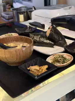 The shop focuses on onigiri, rice balls in a truly authentic Japanese style. The shop is located in Soi Methiniwet, Khlong Tan Subdistrict, Khlong Toei District, Bangkok. It is a rice ball shop with 40 fillings to choose from. If you eat at the shop, it will be served as a set. It is recommended to make a reservation in advance. If you do not make a reservation, you can only order to take home. The atmosphere of the shop is comfortable. There are not many tables to sit at. The rice balls are delicious, made fresh. Just one ball is enough to fill you up. The shop also has other menus such as oden and other snacks.