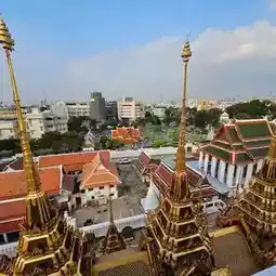 Visitors are allowed to enter, but must be respectful and remove their shoes before entering. The view from the top offers a panoramic sight of the Democracy Monument, Wat Saket (Golden Mount), palaces, and the inner city of Bangkok.