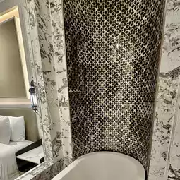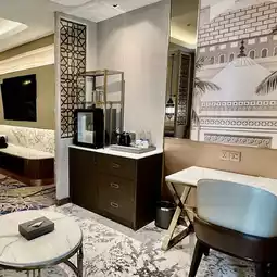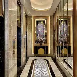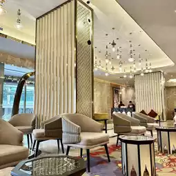 Valia Hotel Bangkok Valia Hotel Bangkok is located in a traditional community near Bangkok's Klong Toei Market. It is surrounded by many local food and shopping malls, where you can experience Bangkok's local culture. The hotel is magnificently designed with Thai cultural imagery. The background of the service counter is decorated with a golden tree of life, which is the Bodhi tree commonly seen in Buddhism and a common cultural image in Thailand. The guest rooms are decorated in a magnificent style. The bedroom uses short-pile carpets and copper lamps. The bathroom is luxuriously decorated with marble throughout the room, which is very luxurious. The bathroom space is luxuriously equipped with double sinks and large mirrors, and the design style is all marble. Public facilities are concentrated on the 6th floor, including a semi-open-air swimming pool, a children's paddling pool, a gym and a conference room. There is also a BelleValia pool bar next to the swimming pool.