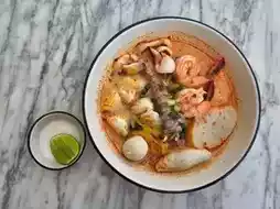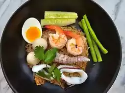 The signature dish of the shop is the egg noodles, which are freshly made every day. There are 2 types: round noodles and flat noodles, which are chewy and soft. There are also seafood dishes, crabs, and mantis shrimp. The seafood ingredients are fresh and clean, packed with ingredients, and served quickly. The price is good. The seafood sauce is incredibly delicious.