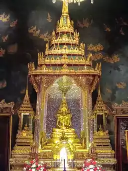 ✨️Worship🙏Phra Buddha Sihing Patimakorn, a replica of Phra Buddha Sihing. Inside the Buddha's throne, the royal remains of King Rama IV are enshrined, which is a rare opportunity. See the door panels decorated with Japanese-style pearl lights.