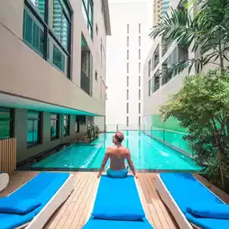 The hotel is located in the business district, near cafes, famous restaurants and many shopping malls