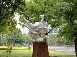 ✨️Benjasiri Park, a beautiful park in the business district. See contemporary sculptures and student works. Get off at Phrom Phong Station. Go down the stairs and you'll reach the park.