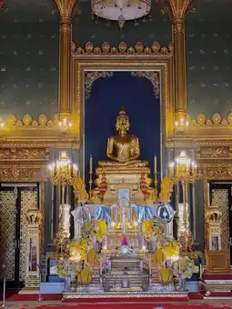 ✨️🚶♀️Walk across the Pakun Bridge to Wat Ratchaprathit Sathit Maha Simaram. During Songkran, the ordination hall is open for you to pay respect to🙏Phra Phuttha Sihang Patimakorn.