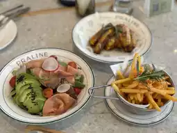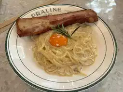 🫕 Praline Dining Room Ratchaphruek branch is located on Phran Nok New Road. It is a fusion restaurant with a beautiful and airy atmosphere, decorated with glass all around and a lawn in the middle of the shop, perfect for taking pictures and relaxing.