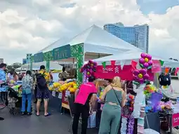 What I like most about this event is the colorful decorations like 𝗦𝗨𝗠𝗠𝗘𝗥, as well as the letters that represent Thainess, flowers, and various fabric patterns. It's fun to play in the water and take beautiful photos. People of all ages can play. There are both sitting areas, food and drinks, and after playing in the water, There is also a drying zone, super convenient