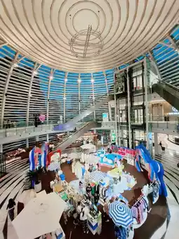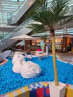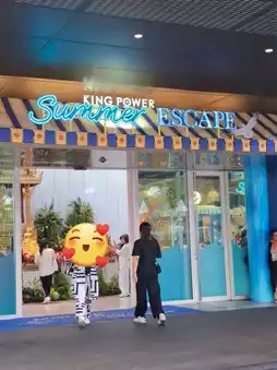 This summer, King Power Rangnam welcomes shoppers with the summer escape theme, refreshing with the Songkran atmosphere, the beach atmosphere, and a bright blue ball pool with an on-the-beach atmosphere for the kids to play.
