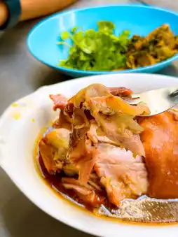 There is a pig's feet rice bowl restaurant that you must visit when you go to CharoenSilom in Bangkok.