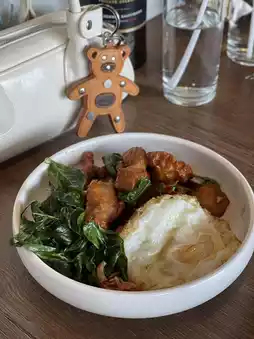 Another impressive menu is stir-fried rice noodles with basil and crispy pork 🐷 The staff recommended that it was very delicious. The pork is very well selected, large pieces of meat, firm, and really crispy. The taste is strong.