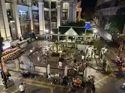The four faces of the Buddha symbolize love, wealth, health, and peace. Devotees worship sincerely, holding fresh flowers, burning incense, and performing dances. Each prayer carries a deep longing from within. Returning to the hotel at night, the bustling traffic outside contrasts with the tranquility in my heart. That sacred feeling remains within me.