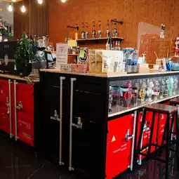 The lower floor is a cafe area. They sell drinks at reasonable prices.