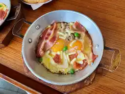 ☕️ There are many menus, including light breakfasts and main dishes like rice. There are also many snacks and drinks. It is a fusion of traditional breakfast menus such as soft-boiled eggs, fried eggs, Kopi, traditional coffee, traditional tea, and modern menus.