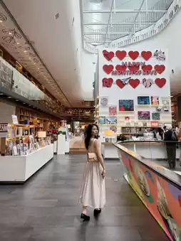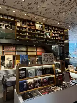 The bookshop boasts an extensive collection of art, design, photography, and travel books, including rare and hard-to-find editions. Its illuminated shelves and cozy reading nooks invite visitors to linger, browse, and discover new inspirations.