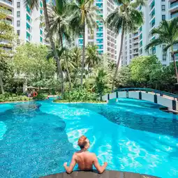 Most importantly, the swimming pool is beautiful, you can swim and relax without getting hot, which is perfect for those who don't like the sun.